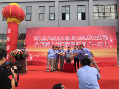 2017年9月29日,河南神馬泰極紙業有限責任公司一期投產儀式隆重舉辦,這是神馬集團和泰極集團強強聯手,譜寫新的篇章的起點,這是信任的延伸和升華,是融合雙方資源,實現資源互補,年產值將達到3萬噸的生產規模。泰極將以精湛的技術、卓越的產品、真誠的態度、一流的服務,打造中原地區最大的化仟紙管、工業紙管、紙質蜂窩板的生產商。此次開業投產儀式,是全新的起點,神馬泰極將揚起風帆,快速駛進市場經濟的大潮。